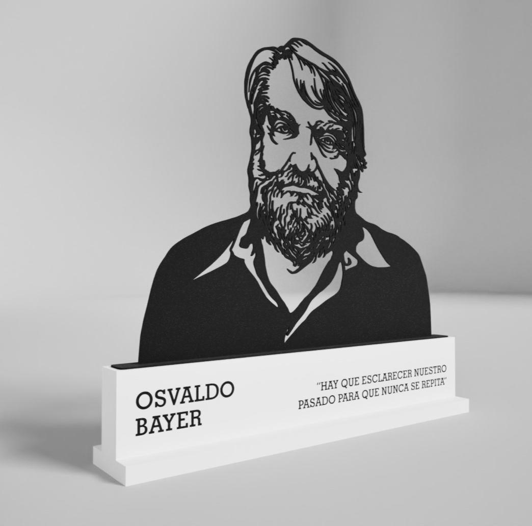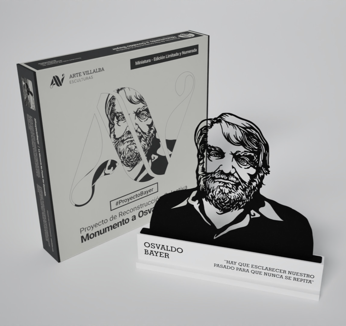 Hemos creado una edición limitada de la escultura de Osvaldo Bayer. Cada una de estas piezas no es un recuerdo, es una semilla. No es un mero objeto, es una declaración. No es una réplica, es un fragmento de la memoria que se disemina para volverse indestructible.